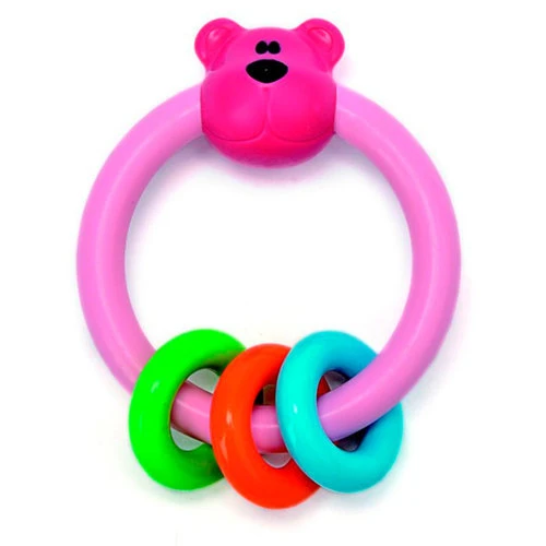 - Baby ring met 3-kleuren ratelende ringen en zacht berenkopje