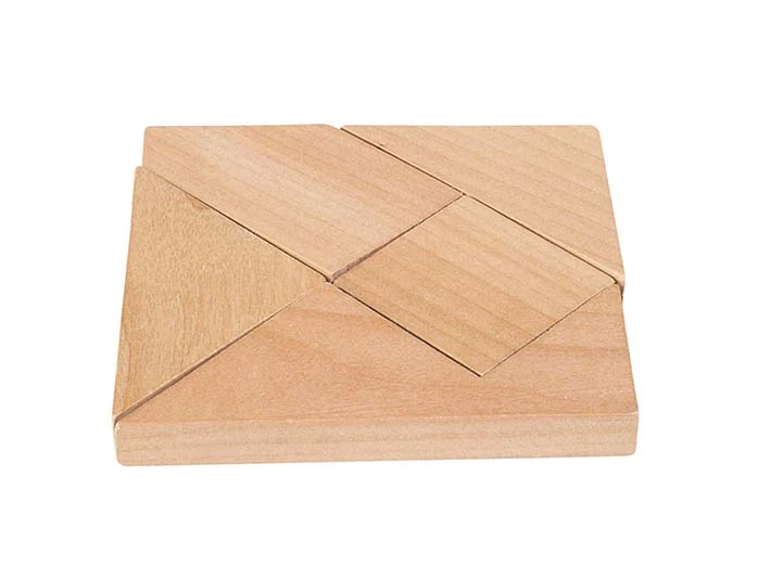 Maak met de 5 puzzelstukjes uit het katoenen zakje een vierkant.Niet zo eenvoudig als het lijkt.
