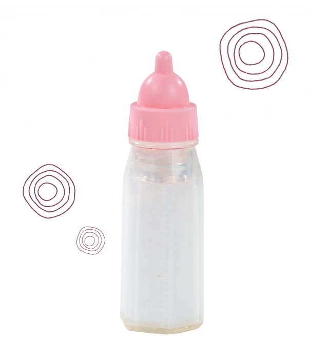 Wanneer je het flesje onderstgeboven aan het mondje van de pop houdt verdwijnt de melk, terwijl het flesje zich weer vult wanneer je het rechtop houdt.