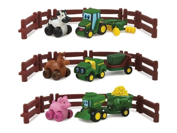 - Johnny Combine met aanhanger, 4 hekjes met 2 kleine poortjes en een varken