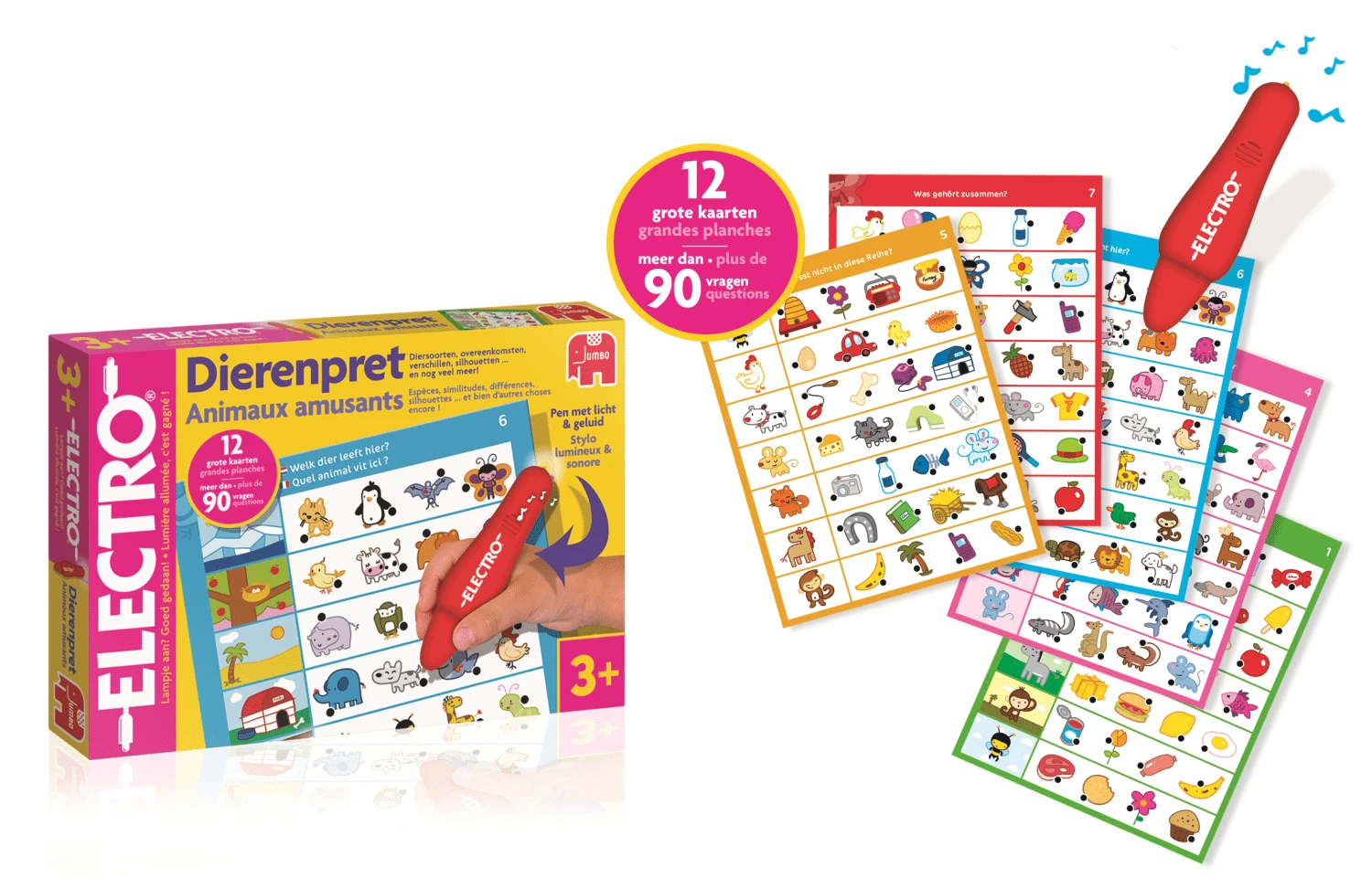 Met Electro Wonderpen dierenpret leerspel leer je alles over verschillende dieren. Vind het juiste antwoord op iedere vraag. Raak met de punt van de pen het antwoord aan. Als het antwoord goed is, hoor je een muziekje en gaat het lampje branden.