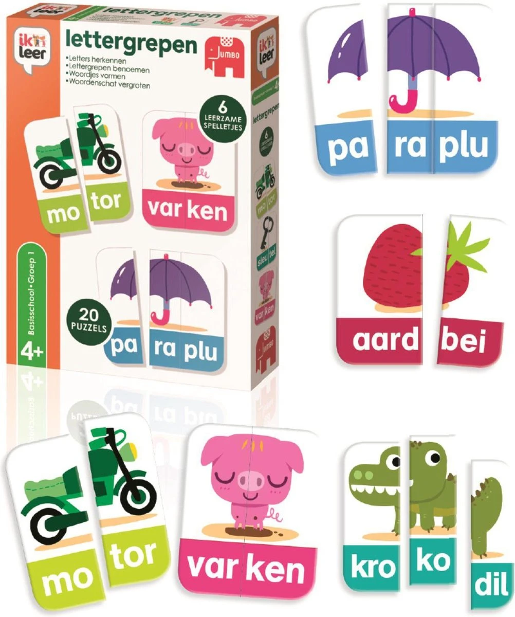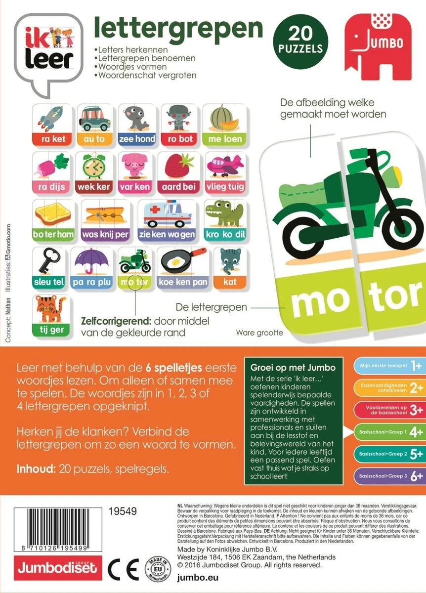 Met Ik Leer Lettergrepen leren kinderen spelenderwijs lettergrepen benoemen, woordjes vormen en de woordenschat vergroten. De woordjes zijn in 1, 2, 3 of 4 lettergrepen opgeknipt. Herken jij de klanken? Verbind de lettergrepen om zo een woord te vormen.