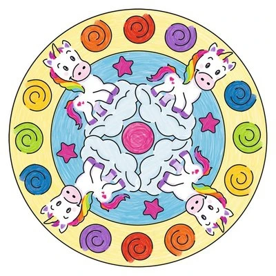 De Ravensburger Mandala-Designer® voor onderweg! Met de Mandala-Designer® Unicorn in Mini-formaat kun je onderweg de mooiste mini mandala’s ontwerpen. Gewoon het papier inleggen en het sjabloon van pijl naar pijl draaien. Kleur je mandala tot slot mooi in en je zelfontworpen mandala is klaar!