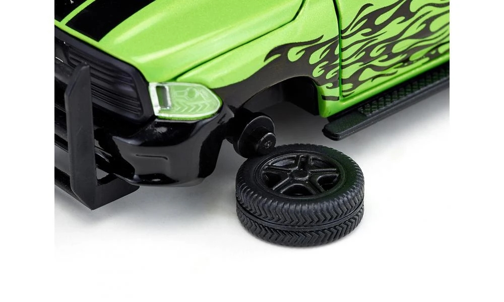 Met de Dodge RAM stappen ook de hardste cowboys graag over op vier wielen: de motoren staan ook met een Ifor-Williams vee-aanhanger borg voor aandrijving op stand op stoffige wegen en op de Highway naar de volgende veeveiling. De RAM is met stootbescherming, rolbeugel en verlichting een robuust werkpaard voor cowboys en de agrarische industrie. Bij dit voertuig kunnen de motorkap, de beide deuren en de achterklep van de laadruimte worden geopend. Bovendien kunnen de zwart gelakte wielen met brede banden worden gewisseld. De 3-assige vee-aanhanger is van metaal, het kunststof dak is afneembaar en de achterklep kan worden geopend om het vee eenvoudig te kunnen inladen.